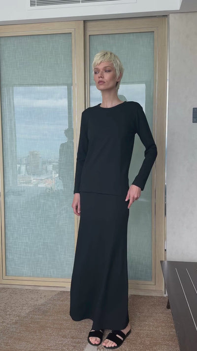 BlackSoft luxurious stretch Matte Jersey, the Column Skirt is a wardrobe staple made with breathable mid-weight Viscose Jersey.